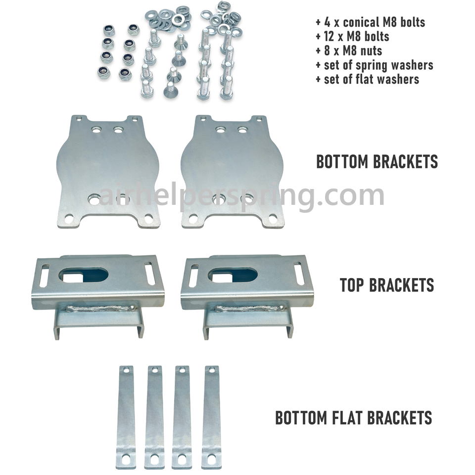 Комплектът за въздушно окачване е напълно предварително сглобен и не изисква допълнителни работи по окачването , като например пробиване или заваряване. Пневматичните пружини са монтирани на мястото на фабричните окачващи елементи , което значително улеснява монтажа.