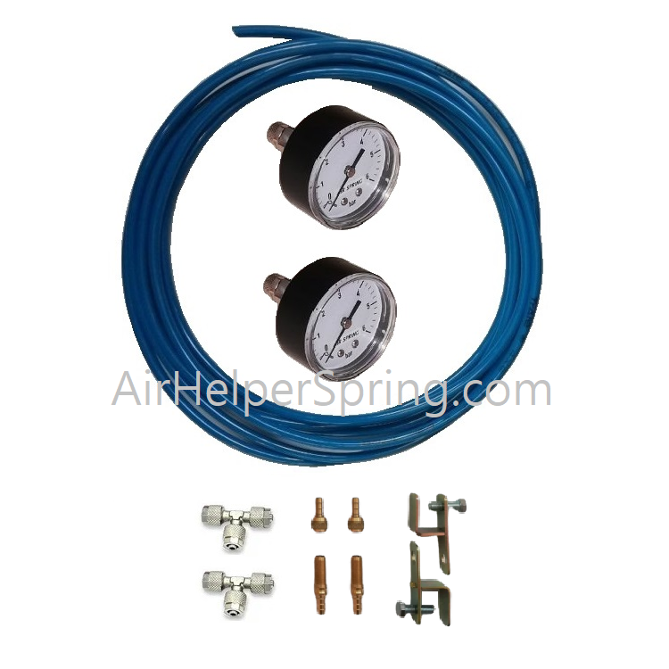 Комплект с маркучи, преходи и два манометъра за контрол и следене на налягане във въздушни възглавници.